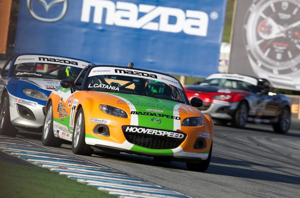 MX-5 Podium Sweep Highlights Weekend May 4, 2014 (MONTEREY, Calif.) The only thing better than racing at Mazda Raceway, is winning at Mazda Raceway. Thanks to outstanding performances by Freedom Autosport and CJ Wilson Racing, it was a Mazda MX-5 Miata 1-2-3 podium sweep in the Continental Tire SportsCar Challenge Street Tuner race this weekend. […]”